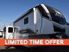 Sleeps 4 Slides 3 Length 37 ft 2 in Ext Width 8 ft 1 in Ext Height 13 ft 3 in Int Height 6 ft 6 in Interior Color Calli Linen Hitch Weight 2085 lbs GVWR 13400 lbs Dry Weight 11135 lbs Cargo Capacity 2265 lbs Fresh Water Capacity 81 gals Grey Water Capacity 87 gals Black Water Capacity 50 gals Tire Size ST235/80R16H Furnace BTU 35000 btu Available Beds King Refrigerator Type 12V Refrigerator Size 16 cu ft Cooktop Burners 3 Shower Size 30" x 48" Number of Awnings 2 LP Tank Capacity 30 lbs Water Heater Type Tankless AC BTU 30000 btu TV Info LR 4K Ultra HD Smart TV Awning Info 11' 6" and 17' Electric with dimmable LED lights Axle Count 2 Washer/Dryer Available Yes Number of LP Tanks 2 Shower Type Standard Electrical Service 50 amp Solar Wattage 200 watts Similar Floorplans