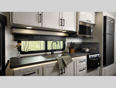 A queen-sized bed comes standard along with vinyl flooring and an ABS shower. Though the Greyhawk may look small, it is packed with amenities for luxury on the go.