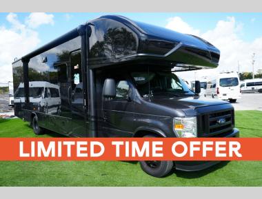 Sleeps 6 Slides 2 Length 32 ft 6 in Ext Width 8 ft 4 in Ext Height 11 ft 8 in Int Height 7 ft Interior Color Modern Farmhouse, Oakridge Exterior Color Standard Graphics, Full-Body Paint: Spring, Summer, Fall, Winter, Midnight Hitch Weight 7500 lbs GVWR 14500 lbs Fresh Water Capacity 47 gals Grey Water Capacity 41 gals Black Water Capacity 32 gals Tire Size LR225/75R16E Furnace BTU 30000 btu Generator 4000 Watt Fuel Type Gas Engine 7.3L V8 Chassis Ford E-450 Horsepower 325 hp Fuel Capacity 55 gals Wheelbase 223 in Number Of Bunks 1 Available Beds Queen Torque 450 ft-lb Refrigerator Type 12 Refrigerator Size 10 cu ft Cooktop Burners 3 Shower Size 30" x 36" Number of Awnings 1 LP Tank Capacity 16.5 gals Water Heater Capacity 6 gal Water Heater Type Gas/Electric DSI AC BTU 15000 btu Basement Storage 55 cu. ft. TV Info LR LED HD Smart TV Awning Info 16' Electric with LED Lights Gross Combined Weight 22000 lbs Shower Type Standard Electrical Service 30 amp Solar Wattage 200 watts Similar Motor Home Class C Floorplans