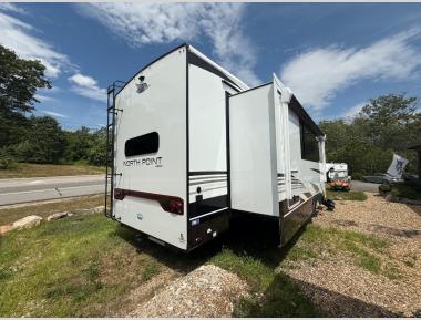 With any North Point fifth wheel by Jayco you begin with a strong foundation with a custom frame, designed and sized specifically to best support each unit. Constructed with Stronghold VBL™ aluminum framed, vacuum bond laminated walls and the Magnum Truss™ XL6™ roof system with an Alpha roof membrane system, which is the strongest tested roof in the industry. The 5-Star Handling package is included with Uniroyal tires, a MORryde rubber pin box, Dexter axles with Nev-R-Adjust brakes, MORryde CRE-3000 rubberized suspension and wet bolt fasteners and bronze bushings. The interior has handcrafted hardwood glazed doors and drawers, vinyl flooring throughout, an integrated under-mount sink in the main bathroom, plus so much more you just have to see one to believe it all!