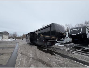 Each Pinnacle fifth wheel features Stronghold VBL lamination for the lightest, yet strongest construction in the RV industry. Add that to the Magnum Truss XL6 roof system and Climate Shield zero-degree tested weather protection and you'll be enjoying your fifth wheel even in harsh weather. Some of the exterior conveniences you will appreciate are the Keyed-Alike lock system, the fully enclosed, universal docking center, and the 6-point hydraulic auto-leveling system for quick and easy set up. The 5 Star Handling Package will make towing a fifth wheel a walk in the park, and the two Whisper Quiet A/C units will keep you comfortable during the hot summer months. Inside, you'll enjoy the residential "Do it all" sink, the solid hardwood cabinet doors, stiles, and fascia, the vinyl flooring throughout, plus many more comforts. There is even a central vacuum system, a wireless remote-control system, 12V charging station, plus many more conveniences to make each trip enjoyable.