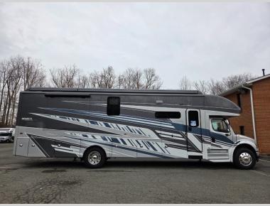 Come see this Super C Diesel Motorhome — featuring a private master suite with full bath, an additional half bath for guests, a spacious reclining sofa, fireplace, and outdoor entertainment center. Call Today! 352.787.7744