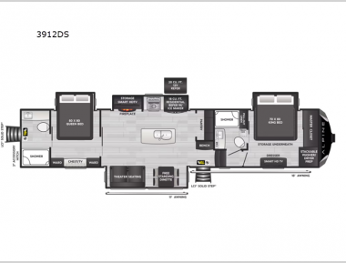 Stock #100693AMesa, AZPrivate front bedroom with king bed slide, underbed storage, bench, and master closet with washer/dryer prep.Stock #100693AMesa, AZPrivate front bedroom with king bed slide, underbed storage, bench, and master closet with washer/dryer prep.