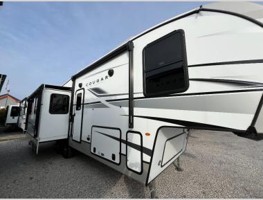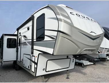 The Keystone Cougar Half-Ton fifth wheel and travel trailers are known as one of America's favorites for a reason! Some of those reasons are the exclusive features that come from Keystone, like the Winegard Air 360+ omni-directional rooftop antenna, the in-floor heating ducts, and the HyperCore composite wall construction with Vixen Fibrogloss high-gloss finish. The Cougar Half-Ton has a Climate Guard protection package with heat-deflecting white sidewalls, two roof attic vents, PEX plumbing and more to enjoy four season camping. Inside, you'll love the dimmable lighting, night roller shades throughout, shower skylight, and bedside USB outlets to keep your electronics charged.