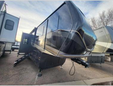 Sleeps 6 Slides 5 Length 42 ft 7 in Ext Width 0 ft Ext Height 13 ft 4 in Interior Color Oakmont Exterior Color Volcano, Cobalt, Sterling, Glacier Full-Body Paint Choices Hitch Weight 2810 lbs Dry Weight 15644 lbs Cargo Capacity 2356 lbs Fresh Water Capacity 70 gals Grey Water Capacity 78 gals Black Water Capacity 39 gals Tire Size 215/75R17.5H Furnace BTU 35000 btu Available Beds King Refrigerator Type Residential w/ Ice maker Refrigerator Size 18 cu ft Convection Cooking Yes Cooktop Burners 3 Shower Size 48" x 30" Number of Awnings 2 LP Tank Capacity 30 lbs AC BTU 45000 btu TV Info Smart HDTV; LR, BR Awning Info 13' & 16' Electric with LED Lights Axle Count 2 Washer/Dryer Available Yes Number of LP Tanks 2 Shower Type Shower w/Seat Electrical Service 50 amp Similar Fifth Wheel Floorplans
