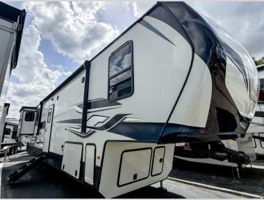 Sleeps 6 Slides 4 Length 41 ft 4 in Ext Height 13 ft 4 in Interior Color Kingston Hitch Weight 2780 lbs Dry Weight 13399 lbs Cargo Capacity 3381 lbs Fresh Water Capacity 75 gals Grey Water Capacity 87 gals Black Water Capacity 48 gals Tire Size ST235/80R16G Furnace BTU 35000 btu Available Beds King Refrigerator Type GE Energy Star Residential with Ice Maker Refrigerator Size 18 cu ft Cooktop Burners 3 Shower Size 48" x 30" Number of Awnings 1 Axle Weight 7000 lbs LP Tank Capacity 30 lbs Water Heater Type On Demand AC BTU 15000 btu TV Info LR 50" LED Smart TV Awning Info 19' Electric with LED Lights Axle Count 2 Washer/Dryer Available Yes Number of LP Tanks 2 Shower Type Shower w/Seat Electrical Service 50 amp Similar Fifth Wheel Floorplans