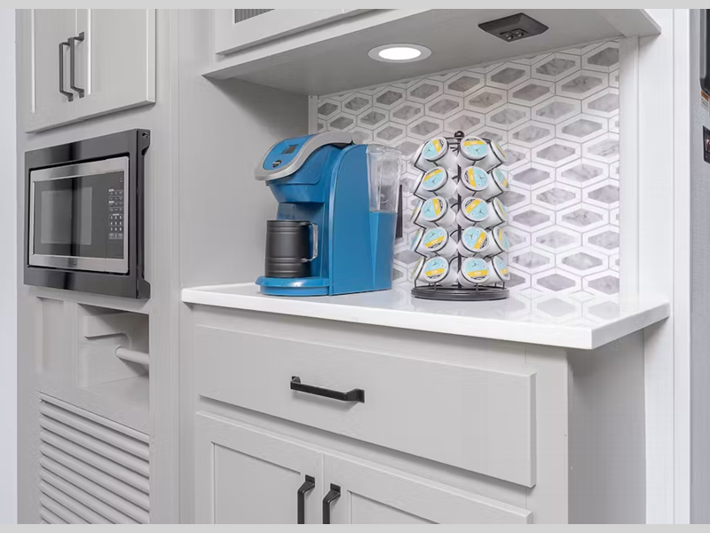 - Queen size bed w/ built-in pet kennel storage (select models)