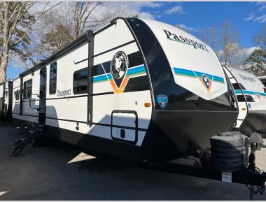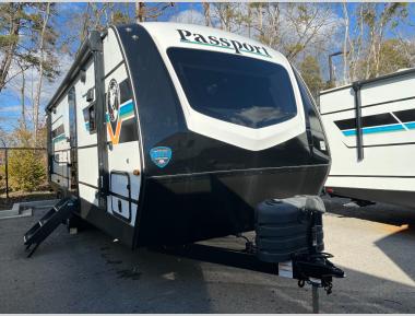 The Keystone RV Passport is an ultra-lightweight travel trailer with thoughtful design and modern amenities for the ultimate camping adventure. All Keystone Passports come with built-in USB Ports, murphy beds, and a power awning with LED lighting. This travel trailer has vaulted ceilings, glass panel doors and upgraded countertops for a sleek and homey appearance.