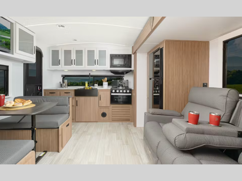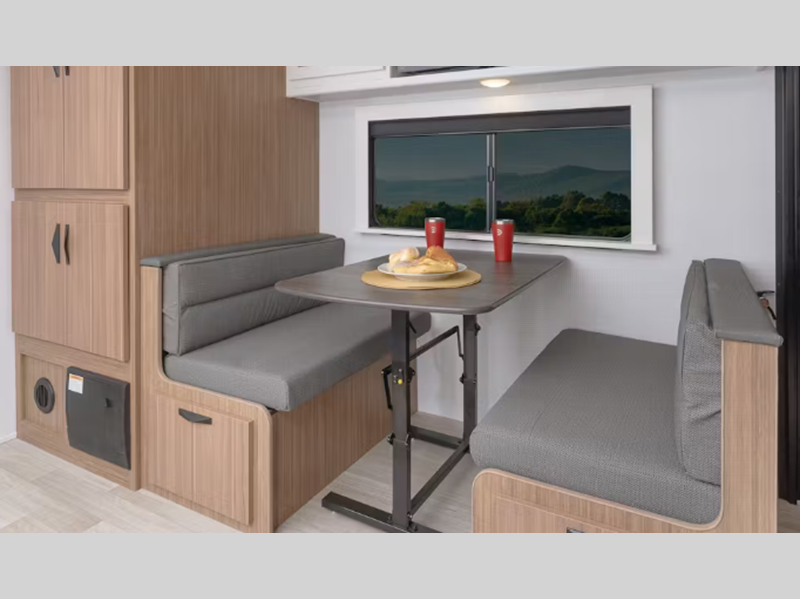 Even though they are smaller in size, they still offer all of the features campers love like a power tongue jack, Solid entry steps, and an exterior convenience center. You'll love the interior with its residential durable Beauflor vinyl flooring, deluxe night shades, and seamless kitchen countertops!