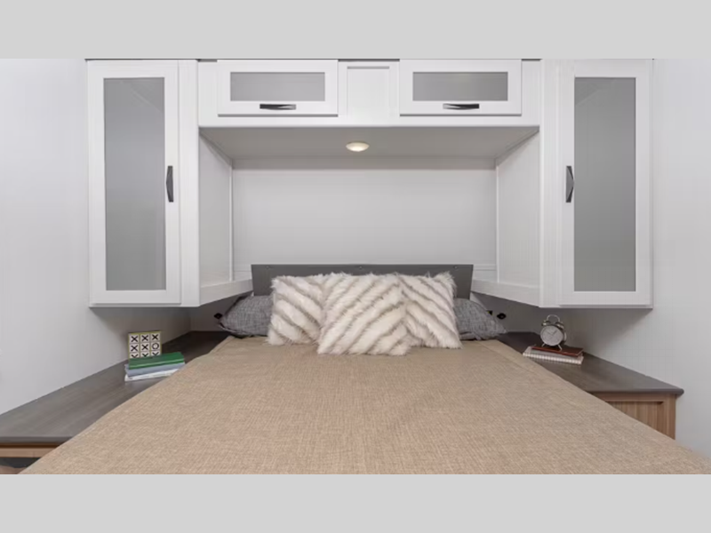 Sleeps 4 Slides 1 Length 30 ft 8 in Ext Height 11 ft 3 in Interior Color Cedar Frost Hitch Weight 700 lbs Dry Weight 6433 lbs Cargo Capacity 2067 lbs Fresh Water Capacity 54 gals Grey Water Capacity 38 gals Black Water Capacity 38 gals Tire Size ST205/75R14D Furnace BTU 30000 btu Available Beds Queen Refrigerator Type Double Door 12V Refrigerator Size 10 cu ft Cooktop Burners 3 Number of Awnings 1 LP Tank Capacity 20 lbs Water Heater Type Girard Tankless AC BTU 13500 btu Awning Info 19' Axle Count 2 Number of LP Tanks 2 Shower Type Standard Similar Floorplans