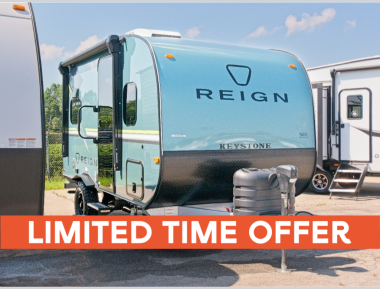 The Reign travel trailers by Keystone are premium single-axle units that are sure to make an impression at the campground. Each one is built with an exclusive automotive-finished aluminum exterior, a walkable roof, and a 100% composite floor for added durability. There are also tinted safety glass windows, quick drop stabilizer jacks, and an exterior shower with hot and cold water. The European inspired interior design is unique and cozy, and the 78" interior height will give you plenty of space to move about. You will also enjoy the ultra bright LED light strip and solid surface countertops in the kitchen, along with blackout night shades, and many more interior comforts.