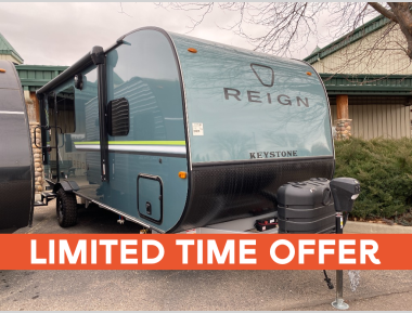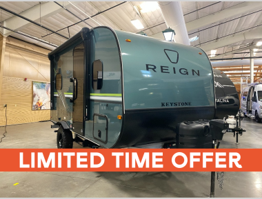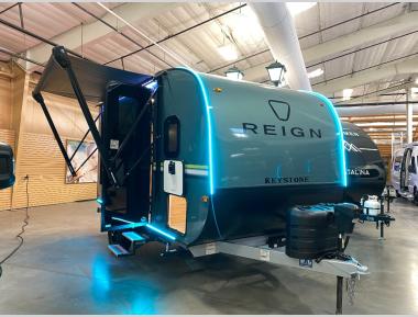 Stock #112395Chichester, NHExperience the freedom of the road in the Keystone Reign 18RB, featuring a spacious front Murphy bed and a cozy theater dinette with built-in fireplace comfort.Stock #112395Chichester, NHExperience the freedom of the road in the Keystone Reign 18RB, featuring a spacious front Murphy bed and a cozy theater dinette with built-in fireplace comfort.