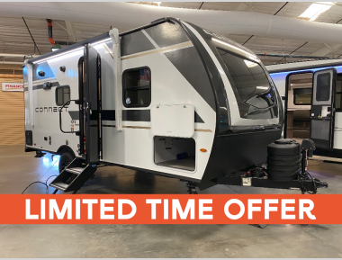 With any Connect Mini travel trailer by KZ, you will enjoy lightweight towing, interior comforts, and a price point you're sure to appreciate. Each model is constructed with durable 1-piece Tufflex material, 5/8" tongue and groove plywood flooring, and a molded fiberglass front cap with a windshield to let of your outdoor views in! You will love the look of the full glass friction hinged entry door, and the power awning with an LED light strip will provide a place to visit outdoors with friends and family. A hot and cold exterior shower also comes standard, along with  a folding grab handle plus roof mounted solar prep and backup camera prep. Head inside to find residential grade linoleum, seamless countertops, roller shades, and painted hardwood cabinet doors. The 42,000 BTU tankless hot water heater will provide endless hot showers, and the low profile 13,500 BTU A/C will keep you comfortable during the summer!