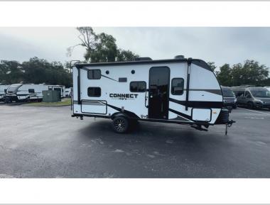 With any Connect Mini travel trailer by KZ, you will enjoy lightweight towing, interior comforts, and a price point you're sure to appreciate. Each model is constructed with durable 1-piece Tufflex material, 5/8" tongue and groove plywood flooring, and a molded fiberglass front cap with a windshield to let of your outdoor views in! You will love the look of the full glass friction hinged entry door, and the power awning with an LED light strip will provide a place to visit outdoors with friends and family. A hot and cold exterior shower also comes standard, along with a folding grab handle plus roof mounted solar prep and backup camera prep. Head inside to find residential grade linoleum, seamless countertops, roller shades, and painted hardwood cabinet doors. The 42,000 BTU tankless hot water heater will provide endless hot showers, and the low profile 13,500 BTU A/C will keep you comfortable during the summer!