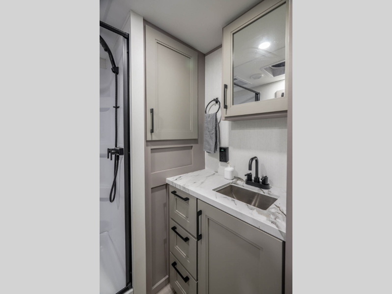 Sleeps 5 Slides 2 Length 29 ft Ext Width 8 ft Ext Height 12 ft 3 in Interior Color Mink, Pebble Exterior Color Polar White Hitch Weight 1370 lbs GVWR 10500 lbs Dry Weight 8350 lbs Cargo Capacity 2150 lbs Fresh Water Capacity 55 gals Grey Water Capacity 90 gals Black Water Capacity 50 gals Tire Size 16" Furnace BTU 35000 btu Available Beds Queen Refrigerator Type French Door Style Refrigerator Size 12 cu ft Cooktop Burners 3 Shower Size 30" x 36" Number of Awnings 1 Axle Weight 6980 lbs LP Tank Capacity 30 lbs Water Heater Type On Demand Tankless AC BTU 15000 btu TV Info LR 43" Smart LED TV Awning Info 16' Electric with LED Lights Axle Count 2 Washer/Dryer Available Yes Number of LP Tanks 2 Shower Type Standard Electrical Service 50 amp Similar Floorplans