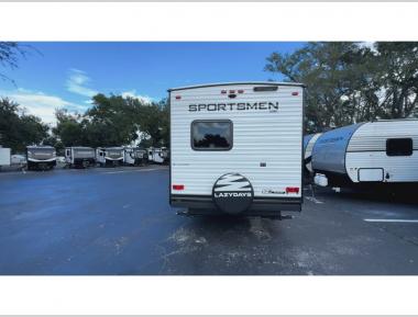 Each Sportsmen SE travel trailer and toy hauler by KZ is constructed with KZ exclusive tough shield exterior metal, a one-piece seamless walk-on Tufflex roofing material, and diamond plate rock guard to protect your unit from road debris. You will appreciate the extra large baggage doors for stowing away your gear when not in use, and tinted windows to help keep the harmful sun rays out plus keeping it cooler inside. Some of the exterior conveniences found in the mandatory Advantage Package are the solid folding steps with a large folding grab handle for easy entry and exit, a full glass friction hinged entry door, plus an exterior shower for your pets or to rinse off before you head inside. You'll also appreciate the nitrogen-filled tires, solar and backup camera prep, plus a Leash Latch with a bonus beverage opener. You'll feel right at home inside with linoleum flooring throughout, a 13,500 BTU air conditioner, large overhead cabinets, a shower surround, and much more!