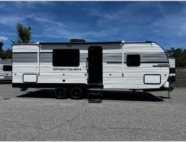 With any Sportsmen Select travel trailer by KZ, you will enjoy premium features at an affordable price, making them perfect for rookie RVers! Each model is constructed with an aerodynamic front profile with a smooth metal front for better fuel efficiency, and the nitrogen filled tires and power tongue jack will make towing easier than ever. There are is also a Key-Alike system for entry and baggage doors to keep your belongings secure, plus backup camera prep and solar roof prep means you can easily add these features to make camping that much smoother. An omnidirectional HDTV antenna with Wi-Fi prep will give you the option to stay connected as you camp, and a multi-media sound bar stereo with Bluetooth, HDMI and USB charge will ensure you'll never go bored on rainy days. The interior of these travel trailers include seamless countertops with a deep undermount stainless steel kitchen sink, a black residential kitchen faucet, wider pocket/passage doors, and residential grade linoleum.