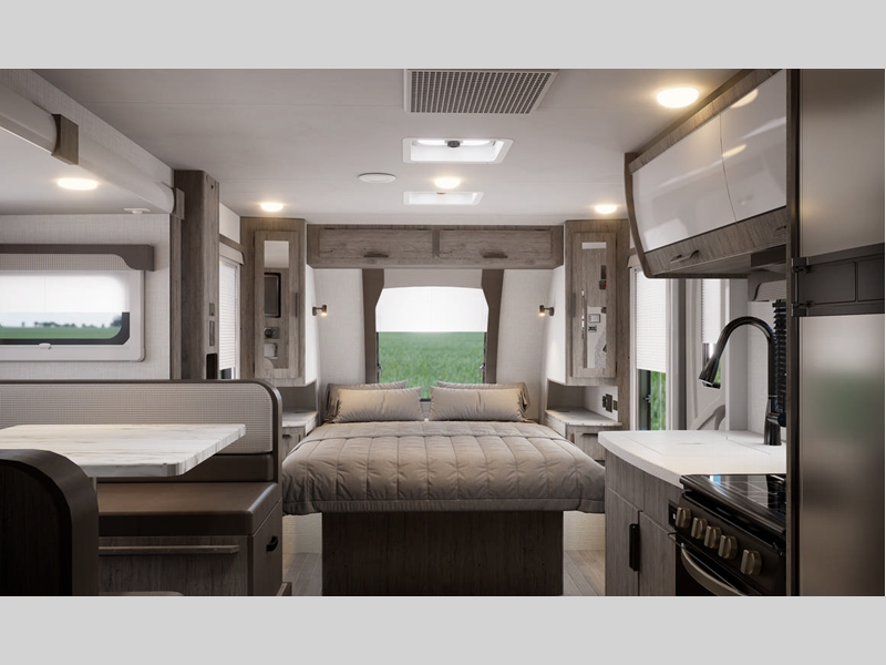 Sleeps 4 Slides 1 Length 23 ft 8 in Ext Width 8 ft 1 in Ext Height 10 ft 3 in Int Height 6 ft 8 in Interior Color Fog, Mink, Thunder Hitch Weight 635 lbs GVWR 7000 lbs Dry Weight 4480 lbs Cargo Capacity 2520 lbs Fresh Water Capacity 45 gals Grey Water Capacity 40 gals Black Water Capacity 40 gals Tire Size 205/75R15 Available Beds Queen Refrigerator Type 12V Double Door Norcold Refrigerator Size 7 cu ft Cooktop Burners 3 Number of Awnings 1 Axle Weight 3845 lbs LP Tank Capacity 5 gals Water Heater Type Truma AquaGo Axle Count 2 Number of LP Tanks 2 Shower Type Standard Similar Floorplans