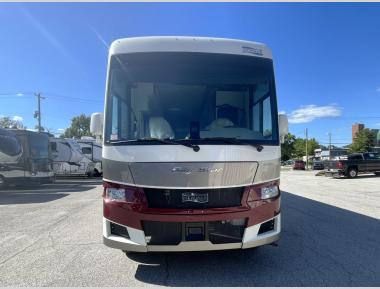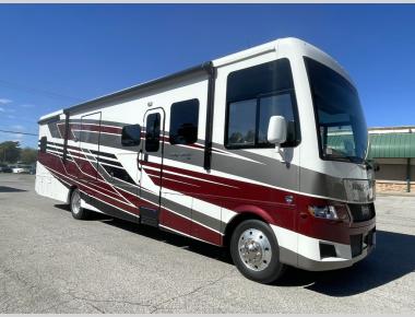 Sleeps 4 Slides 3 Length 38 ft 11 in Ext Width 8 ft 6 in Ext Height 12 ft 10 in Int Height 7 ft Interior Color Arlow, Stowe, Vista Exterior Color Annapolis, Calvert, Williamsburg Hitch Weight 5000 lbs GVWR 26000 lbs Dry Weight 22850 lbs Cargo Capacity 3150 lbs Fresh Water Capacity 75 gals Grey Water Capacity 60 gals Black Water Capacity 40 gals Furnace BTU 42000 btu Generator 5.5 kW Onan Fuel Type Gas Engine 7.3L V8 Chassis Ford F-53 Horsepower 335 hp Fuel Capacity 80 gals Wheelbase 254 in Available Beds Queen Torque 468 ft-lb Refrigerator Type Norcold Refrigerator Size 10 cu ft Convection Cooking Yes Cooktop Burners 3 Shower Size 48" x 36" Number of Awnings 1 Axle Weight Front 9000 lbs Axle Weight Rear 17500 lbs LP Tank Capacity 25 gals Water Heater Capacity 6 gal Water Heater Type Gas/Electric AC BTU 27000 btu TV Info LR Samsung LED TV, BR Samsung LED TV Awning Info Carefree Travel'r Power Side Awning w/Strip Lighting Washer/Dryer Available Yes Gross Combined Weight 30000 lbs Shower Type Shower w/Seat Electrical Service 50 amp Similar Motor Home Class A Floorplans