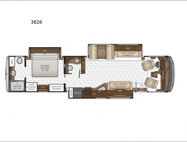 Sleeps 5 Slides 3 Length 38 ft 11 in Ext Width 8 ft 6 in Ext Height 12 ft 10 in Int Height 7 ft Interior Color Arlow, Stowe, Vista Exterior Color Annapolis, Calvert, Williamsburg Hitch Weight 5000 lbs GVWR 26000 lbs Dry Weight 22850 lbs Cargo Capacity 3150 lbs Fresh Water Capacity 75 gals Grey Water Capacity 60 gals Black Water Capacity 92 gals Furnace BTU 35000 btu Generator 5.5 kW Onan Fuel Type Gas Engine 7.3L V8 Chassis Ford F-53 Horsepower 335 hp Fuel Capacity 80 gals Wheelbase 254 in Available Beds King Torque 468 ft-lb Refrigerator Type Norcold Refrigerator Size 10 cu ft Convection Cooking Yes Cooktop Burners 3 Shower Size 40" x 30" Number of Awnings 1 Axle Weight Front 9000 lbs Axle Weight Rear 17500 lbs LP Tank Capacity 25 gals Water Heater Capacity 6 gal Water Heater Type Gas/Electric AC BTU 27000 btu TV Info LR Samsung LED TV Lift, BR Samsung LED TV Awning Info Carefree Travel'R Side Awning with Strip Lighting Washer/Dryer Available Yes Gross Combined Weight 30000 lbs Shower Type Standard Electrical Service 50 amp Similar Motor Home Class A Floorplans