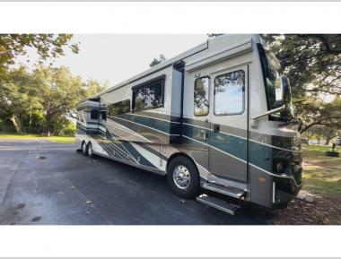 Sleeps 5 Slides 3 Length 43 ft 9 in Ext Width 8 ft 6 in Ext Height 13 ft 1 in Int Height 6 ft 11 in Interior Color Alora, Bayshore, Catalina, Stratton Exterior Color Champagne, Salsa, Seaspray, Steely Hitch Weight 15000 lbs GVWR 51000 lbs Dry Weight 40350 lbs Cargo Capacity 10650 lbs Fresh Water Capacity 105 gals Grey Water Capacity 75 gals Black Water Capacity 55 gals Furnace BTU 50000 btu Generator 10 kW Onan Fuel Type Diesel Engine Cummins 8.9L Chassis Freightliner Tag Axle Horsepower 450 hp Fuel Capacity 150 gals Wheelbase 288 in Available Beds King Torque 1250 ft-lb Refrigerator Type Whirlpool Refrigerator Size 19.7 cu ft Convection Cooking Yes Cooktop Burners 3 Shower Size 40" x 32" Number of Awnings 1 Axle Weight Front 19000 lbs Axle Weight Rear 20000 lbs Axle Weight Tag 12000 lbs LP Tank Capacity 22 Water Heater Type Demand AC BTU 45000 btu TV Info LR Samsung LED TV, BR Samsung LED TV Awning Info Girard® G2000 power with wind sensor, remote control & LED lights Washer/Dryer Available Yes Gross Combined Weight 66000 lbs Shower Type Shower w/Seat Electrical Service 50 amp Similar Motor Home Class A - Diesel Floorplans