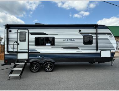 If you're looking for family-fun adventures then you need one of these Palomino Puma fifth wheels or travel trailers! They are built rugged, easy to tow, and jam packed with features. The Darco wrapped underbelly will protect your units vitals and the AlphaPly roofing membrane covers it. They also have new aluminum wheels and a powder coated steel I-beam frame. Inside, the Congoleum linoleum will be easy to keep clean, and the night roller shades will provide privacy when it's time to turn in. You'll also enjoy an electric awning with an LED light strip plus an AM/FM/Bluetooth stereo and two outside speakers to keep the party going!