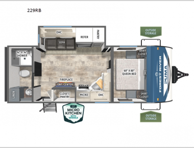 This travel trailer is inviting and spacious thanks to the large slide out, which houses the sofa, 12V refrigerator and second pantry! There is a fireplace across from the sofa for added comfort, and the full rear bath will be easy to get to. A full kitchen inside includes a stainless steel oven and range plus a stainless steel microwave to cook meals, and you can choose to add the optional micro kitchen with a griddle if you enjoy cooking outdoors! When you're ready to call it a night, the queen bed in the front private bedroom will be calling your name!