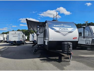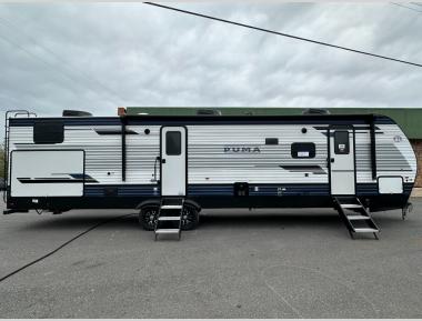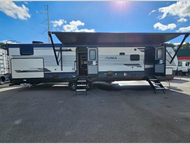 If you're looking for family-fun adventures then you need one of these Palomino Puma fifth wheels or travel trailers! They are built rugged, easy to tow, and jam packed with features. The Darco wrapped underbelly will protect your units vitals and the AlphaPly roofing membrane covers it. They also have new aluminum wheels and a powder coated steel I-beam frame. Inside, the Congoleum linoleum will be easy to keep clean, and the night roller shades will provide privacy when it's time to turn in. You'll also enjoy an electric awning with an LED light strip plus an AM/FM/Bluetooth stereo and two outside speakers to keep the party going!