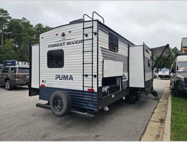 If you're looking for family-fun adventures then you need one of these Palomino Puma fifth wheels or travel trailers! They are built rugged, easy to tow, and jam packed with features. The Darco wrapped underbelly will protect your units vitals and the AlphaPly roofing membrane covers it. They also have new aluminum wheels and a powder coated steel I-beam frame. Inside, the Congoleum linoleum will be easy to keep clean, and the night roller shades will provide privacy when it's time to turn in. You'll also enjoy an electric awning with an LED light strip plus an AM/FM/Bluetooth stereo and two outside speakers to keep the party going!