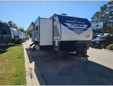 If you're looking for family-fun adventures then you need one of these Palomino Puma fifth wheels or travel trailers! They are built rugged, easy to tow, and jam packed with features. The Darco wrapped underbelly will protect your units vitals and the AlphaPly roofing membrane covers it. They also have new aluminum wheels and a powder coated steel I-beam frame. Inside, the Congoleum linoleum will be easy to keep clean, and the night roller shades will provide privacy when it's time to turn in. You'll also enjoy an electric awning with an LED light strip plus an AM/FM/Bluetooth stereo and two outside speakers to keep the party going!