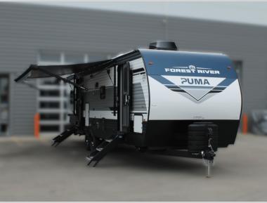 If you're looking for family-fun adventures then you need one of these Palomino Puma fifth wheels or travel trailers! They are built rugged, easy to tow, and jam packed with features. The Darco wrapped underbelly will protect your units vitals and the AlphaPly roofing membrane covers it. They also have new aluminum wheels and a powder coated steel I-beam frame. Inside, the Congoleum linoleum will be easy to keep clean, and the night roller shades will provide privacy when it's time to turn in. You'll also enjoy an electric awning with an LED light strip plus an AM/FM/Bluetooth stereo and two outside speakers to keep the party going!