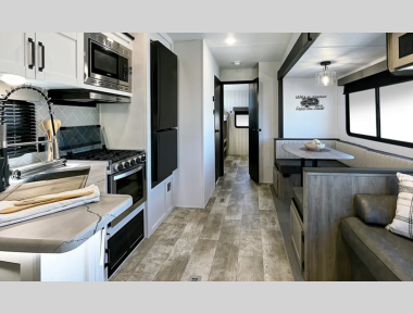 All models feature floor ducted heat, insulated wrapped ducted air conditioning runs and powder coated frames. The Puma has a gross vehicle weight rating up to 10,750 pounds and a length up to 38-feet and 8-inches, depending on the model. The interior offers decorative kitchen backsplash, glass range cover and a high-density foam mattress.