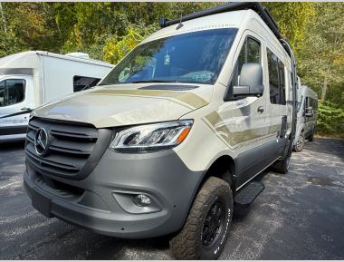 Sleeps 2 Length 20 ft Ext Width 7 ft 8 in Ext Height 10 ft Int Height 6 ft 3 in Exterior Color Arctic White, Pebble Grey, Blue Grey GVWR 9050 lbs Fresh Water Capacity 37 gals Grey Water Capacity 24 gals Fuel Type Diesel Engine 2500 4-Cylender High Output AWD Chassis Mercedes-Benz Sprinter Fuel Capacity 24.5 gals Wheelbase 144 in Refrigerator Type Refrigerator/Freezer Cooktop Burners 1 Number of Awnings 1 Water Heater Type Continuous Awning Info Power with Dimmable LED Shower Type Wet/Bath Shower Electrical Service 30 amp Solar Wattage 100 watts