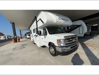 With any Chateau ESpec Class C gas motorhome by Thor Motor Coach, you will find convenient amenities, a modern interior, and a reliable Ford E-Series chassis, with an optional Chevy chassis on select models to power your adventures. There is welded tubular aluminum roof and sidewall cage construction, a one-piece fiberglass front cap, and a premium one-piece domed roof membrane for added strength. Residential vinyl flooring will be easy to keep clean, and you'll love the sleek look of the Hampton Collection two-toned cabinets. These motorhomes also include a 50 State 4.0 kW dual gas/LP generator and a 30-amp shoreline power cord to keep you going, along with a tankless water heater and 13,500 roof front A/C to ensure your comfort!