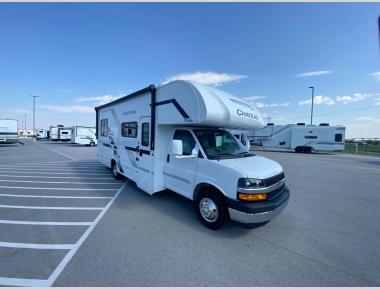Sleeps 5 Slides 1 Length 26 ft 5 in Ext Width 8 ft 3 in Ext Height 11 ft Int Height 7 ft Interior Color Silk Haze, Snow Leopard Exterior Color Standard Graphics Hitch Weight 8000 lbs GVWR 12500 lbs Fresh Water Capacity 41 gals Grey Water Capacity 33 gals Black Water Capacity 30 gals Furnace BTU 30000 btu Generator 4.0 kW Gas Fuel Type Gas Engine 7.3L V8 Chassis Ford E-Series Horsepower 325 hp Fuel Capacity 55 gals Wheelbase 176 in Number Of Bunks 1 Available Beds Two Twin with King Conversion Torque 450 ft-lb Refrigerator Type 12V Convection Cooking Yes Cooktop Burners 2 Shower Size 27" x 27" Number of Awnings 1 LP Tank Capacity 40.9 lbs Water Heater Type Tankless AC BTU 13500 btu Basement Storage 65 cu. ft. TV Info Cab 32" Smart TV Awning Info 17' 6" Power w/Integrated LED Lighting Gross Combined Weight 18500 lbs Shower Type Radius Electrical Service 30 amp Similar Motor Home Class C Floorplans