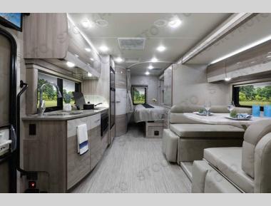 Luxury comes standard in the Delano Sprinter Class C diesel motorhomes by Thor Motor Coach. You will find it so easy to maneuver the road with the Mercedes-Benz Safety package that includes features such as active braking assist and distance regulator distronic plus that will help keep a safe distance from vehicles in front of you, and you can add the optional blind spot detection system for even more convenience. The frameless windows and the full-body paint package with gel coated sidewalls is sure to be eye-catching, plus there is invisible front paint protection for added defense against the elements. Each model includes the Rapid Camp+ multiplex wiring control system that will make set-up easier than ever, a Winegard ConnecT 2.0 WiFi/4G/TV antenna to keep you connected to the outside world, and premium one-piece Crossflex roofing material that is ultra durable. The Delano Sprinter also includes many interior comforts, like the easy-to-clean residential vinyl flooring, the Euro-style cabinetry, and the Leatherette furniture!