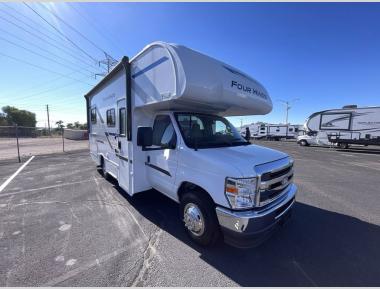 With any Four Winds ESpec Class C gas motorhome by Thor Motor Coach, you will find convenient amenities, a modern interior, and a reliable Ford E-Series chassis, with an optional Chevy chassis on select models to power your adventures. There is welded tubular aluminum roof and sidewall cage construction, a one-piece fiberglass front cap, and a one-piece domed roof membrane for added strength. Residential vinyl flooring will be easy to keep clean, and you'll love the sleek look of the Hampton Collection, two-toned cabinets. These motorhomes also include a 50 state 4.0 kW dual gas/LP generator and a 30-amp shoreline power cord to keep you going, along with a tankless water heater and 13,500 roof front A/C to ensure your comfort!