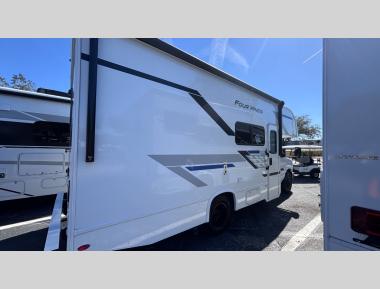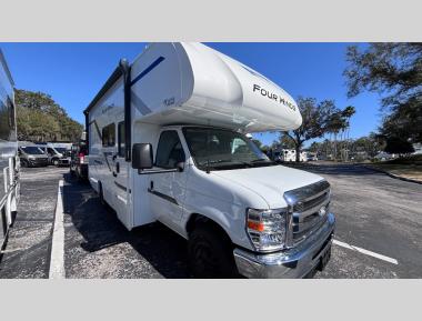Sleeps 5 Slides 1 Length 24 ft 1 in Ext Width 8 ft 3 in Ext Height 11 ft Int Height 7 ft Interior Color Nantucket Blue ll, Sunlit Silver Exterior Color Standard Graphics Hitch Weight 8000 lbs GVWR 12500 lbs Fresh Water Capacity 40 gals Grey Water Capacity 35 gals Black Water Capacity 30 gals Furnace BTU 19000 btu Generator 4.0 kW Gas Dual Gas/LP Fuel Type Gas Engine 7.3L V8 Chassis Ford E-Series Horsepower 325 hp Fuel Capacity 55 gals Wheelbase 158 in Number Of Bunks 1 Available Beds RV Queen Torque 450 ft-lb Refrigerator Type 12V Convection Cooking Yes Cooktop Burners 2 Shower Size 24" x 36" Number of Awnings 1 LP Tank Capacity 40.9 lbs Water Heater Type Tankless AC BTU 13500 btu Basement Storage 30.9 cu. ft. TV Info Cab 32" Smart TV Awning Info 15' Power w/Integrated LED Lighting Gross Combined Weight 18500 lbs Shower Type Standard Electrical Service 30 amp Similar Motor Home Class C Floorplans