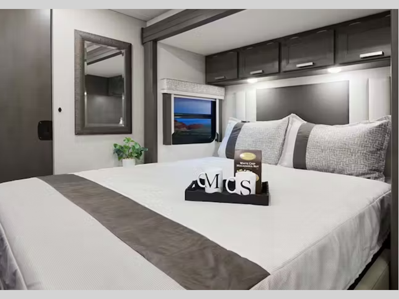 Sleeps 5 Slides 2 Length 33 ft 2 in Ext Width 8 ft 3 in Ext Height 12 ft 6 in Int Height 7 ft Interior Color Overlook, Morning Breeze Exterior Color Cityscape Edition ll Partial Paint. Clear Lake ll, Monterey Bay ll, Santa Ana Wind ll Full Body Paint Choices Hitch Weight 10000 lbs GVWR 19500 lbs Fresh Water Capacity 75 gals Grey Water Capacity 47 gals Black Water Capacity 40 gals Furnace BTU 30000 btu Generator Onan RV QD 6000 Diesel Fuel Type Diesel Engine 6.7L Power Stroke 4 x 4 V8 Turbo Chassis Ford F-550 Horsepower 330 hp Fuel Capacity 66.5 gals Wheelbase 227 in Number Of Bunks 1 Available Beds RV Queen Refrigerator Type Residential Cooktop Burners 3 Shower Size 30" x 36" Number of Awnings 1 LP Tank Capacity 68.2 lbs Water Heater Type Tankless AC BTU 27000 btu Basement Storage 78 cu. ft. TV Info Smart TV; LR 40", BR 32", Ext. 32" Awning Info 14' Power with LED Lights Gross Combined Weight 43000 lbs Shower Type Standard Electrical Service 50 amp Similar Floorplans