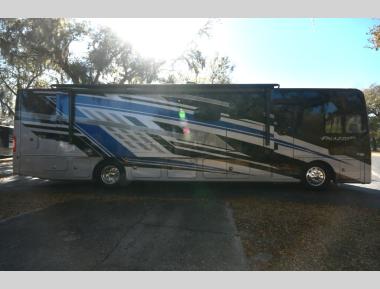 Sleeps 6 Slides 3 Length 38 ft 11 in Ext Width 8 ft 5 in Ext Height 12 ft 5 in Int Height 6 ft 10 in Interior Color Dovetail 2, Cashmere, Macaroon 2 Exterior Color Granite Point , Revel Blue, White Rock Hitch Weight 10000 lbs GVWR 32000 lbs Fresh Water Capacity 95 gals Grey Water Capacity 40 gals Black Water Capacity 40 gals Tire Size 275/80R 22.5 Furnace BTU 35000 btu Generator Onan RV QD 6000 Diesel Fuel Type Diesel Engine Cummins ISB 6.7L Chassis Freightliner XCS Horsepower 340 hp Fuel Capacity 90 gals Wheelbase 256 in Number Of Bunks 1 Available Beds Queen Torque 700 ft-lb Refrigerator Type Residential Convection Cooking Yes Cooktop Burners 2 Shower Size 52" x 30" Number of Awnings 1 LP Tank Capacity 105 lbs Water Heater Type On Demand AC BTU 27000 btu Basement Storage 159 cu. ft. TV Info LR 50" LED Smart TV, BR 32" LED Smart TV, Awning Info 18' Power with Integrated LED Lighting Washer/Dryer Available Yes Gross Combined Weight 33000 lbs Shower Type Standard Electrical Service 50 amp Similar Motor Home Class A - Diesel Floorplans