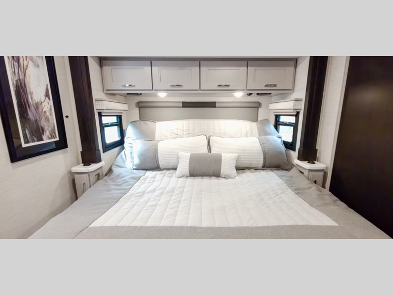 Each model features a spacious and elegant interior with luxury vinyl tile flooring, solid surface kitchen countertops, leatherette furniture, and many more luxuries. The driver will love how smooth the road feels with the Air-Ride suspension and Sachs shock absorbers, and the 10.1" touchscreen dash radio with Bluetooth will let you enjoy your favorite tunes as you travel down the highway. Glamping is made easy when you have an LED Smart TV onboard, along with a Winegard ConnecT 2.0 that functions as a Wi-Fi router, 4G hotspot, and TV antenna!