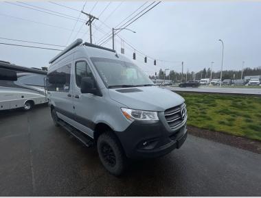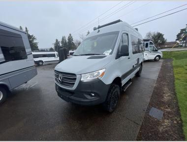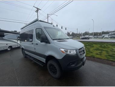Sleeps 2 Length 19 ft 8 in Ext Width 7 ft 8 in Ext Height 10 ft 6 in Int Height 6 ft 4 in Interior Color Coastal Cream, White Sand Exterior Color Full Body Paint; Tenorite Gray, Blue Gray, Silver Grey Hitch Weight 5000 lbs GVWR 9050 lbs Fresh Water Capacity 22 gals Grey Water Capacity 20 gals Black Water Capacity 4.75 gals Furnace BTU 13600 btu Fuel Type Diesel Engine 2.0L 4-Cylinder Chassis Mercedes-Benz Sprinter 2500 Horsepower 211 hp Fuel Capacity 24.5 gals Wheelbase 144 in Torque 332 ft-lb Refrigerator Type Single Door 12V Electric Cooktop Burners 1 Number of Awnings 1 Water Heater Capacity 2.64 gal Water Heater Type Diesel AC BTU 11000 btu TV Info LR 24" Smart TV Awning Info 10' 8" Power Thule Lateral Arm with Integrated LED Lighting Gross Combined Weight 13930 lbs Shower Type Wet/Bath Shower Electrical Service 30 amp