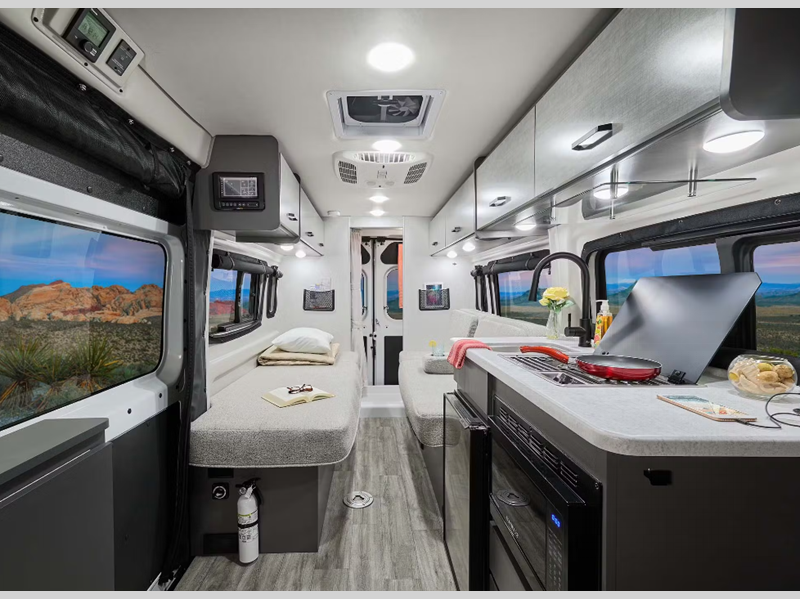 Sleeps 2 Length 21 ft 1 in Ext Width 6 ft 9 in Ext Height 9 ft 5 in Int Height 6 ft 3 in Interior Color Alpine, Charcoal Fusion Exterior Color Charcoal, Silver, White Hitch Weight 3500 lbs GVWR 9350 lbs Fresh Water Capacity 27 gals Grey Water Capacity 13 gals Black Water Capacity 13.5 gals Furnace BTU 14300 btu Generator Onan® RV QG 2800 Fuel Type Gasoline Engine 3.6L Pentastar V6 Chassis RAM ProMaster 3500 Horsepower 276 hp Fuel Capacity 24 gals Wheelbase 159 in Torque 250 ft-lb Refrigerator Type Single Door 12V Cooktop Burners 2 LP Tank Capacity 24 lbs. Water Heater Capacity 2.64 gal Water Heater Type Truma Combi Eco AC BTU 11000 btu Gross Combined Weight 11500 lbs Shower Type Wet/Bath Shower Electrical Service 30 amp Similar Floorplans