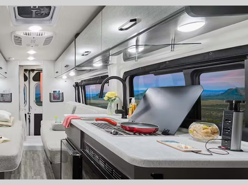 Sleeps 2 Length 21 ft 1 in Ext Width 6 ft 9 in Ext Height 9 ft 5 in Int Height 6 ft 3 in Interior Color Alpine, Charcoal Fusion Exterior Color Ceramic Gray, Silver, White Hitch Weight 3500 lbs GVWR 9350 lbs Fresh Water Capacity 25 gals Grey Water Capacity 20 gals Black Water Capacity 4.75 gals Furnace BTU 14300 btu Generator Onan® RV QG 2800 Fuel Type Gasoline Engine 3.6L Pentastar V6 Chassis RAM ProMaster 3500 Horsepower 276 hp Fuel Capacity 24 gals Wheelbase 159 in Torque 250 ft-lb Refrigerator Type Single Door 12V Cooktop Burners 2 LP Tank Capacity 24 lbs. Water Heater Capacity 2.64 gal Water Heater Type Truma Combi Eco AC BTU 11000 btu Gross Combined Weight 11500 lbs Shower Type Wet/Bath Shower Electrical Service 30 amp -