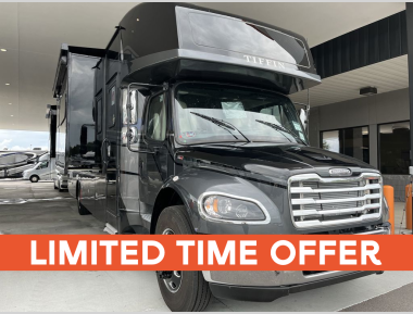 Sleeps 8 Slides 3 Length 39 ft 4 in Ext Width 8 ft 5 in Ext Height 13 ft 3 in Int Height 7 ft 2 in Interior Color Adobe Pendleton National Parks Collection, Morocco, Vapor Exterior Color Generation 3 Paint Schemes, Midnight Blue Hitch Weight 12000 lbs GVWR 33000 lbs Fresh Water Capacity 150 gals Grey Water Capacity 70 gals Black Water Capacity 45 gals Tire Size 275/80R 22.5 Furnace BTU 35000 btu Generator 8.0 kW Onan Quiet Diesel Fuel Type Diesel Engine Cummins B6.7 Chassis Freightliner S2RV Horsepower 360 hp Fuel Capacity 100 gals Wheelbase 279 in Number Of Bunks 1 Available Beds King Torque 800 ft-lb Refrigerator Type Stainless Steel Residential w/Top Freezer Refrigerator Size 20 cu ft Convection Cooking Yes Cooktop Burners 3 Shower Size 28.5" x 40.5" Number of Awnings 1 Axle Weight Front 12000 lbs Axle Weight Rear 21000 lbs LP Tank Capacity 20.3 gals Water Heater Type Truma AquaGo Comfort Instant AC BTU 30000 btu Basement Storage 136 cu. ft. TV Info LR Mounted Overhead TV, BR Mounted TV Awning Info Girard Patio w/LED Lighting Washer/Dryer Available Yes Gross Combined Weight 45000 lbs Shower Type Shower w/Seat Electrical Service 50 amp Similar Motor Home Super C - Diesel Floorplans