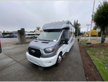 Sleeps 3 Length 24 ft 6 in Ext Width 7 ft 6 in Ext Height 10 ft 6 in Int Height 6 ft 6 in Interior Color Seafront Exterior Color Full-Body Paint: Dovetail, Iceburg, Palladian GVWR 11000 lbs Fresh Water Capacity 38 gals Grey Water Capacity 28 gals Black Water Capacity 26 gals Tire Size 205/75R16C Furnace BTU 20000 btu Generator 4.0 kW Dual Gas/LP Generator Fuel Type Gas Engine 3.5L EcoBoost Chassis Ford 350 HD AWD Transit Cutaway Horsepower 310 hp Fuel Capacity 31 gals Wheelbase 178 in Available Beds Twin Beds with King Bed Conversion Torque 400 ft-lb Refrigerator Type 12 Volt Refrigerator Size 8 cu ft Convection Cooking Yes Cooktop Burners 1 Shower Size 24" x 32" Number of Awnings 1 LP Tank Capacity 12.2 gals Water Heater Type Truma AquaGo Comfort Plus Instant AC BTU 13500 btu TV Info LR: 43" Smart TV, BR: Swivel Smart TV Awning Info Girard Side-Mounted Power w/Integrated LED Lighting Gross Combined Weight 13000 lbs Shower Type Standard Electrical Service 30 amp Similar Motor Home Class C Floorplans