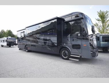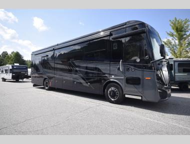 Sleeps 7 Slides 4 Length 41 ft 4 in Ext Width 8 ft 5 in Ext Height 13 ft 3 in Int Height 6 ft 11 in Interior Color Gelato, Mesa, Titanium Exterior Color Gen 10, Gen 11; Bordeaux, Waterfall, Frosted Granite, Nasa, White Mahogany. Midnight Blue Edition Hitch Weight 10000 lbs GVWR 40000 lbs Fresh Water Capacity 100 gals Grey Water Capacity 100 gals Black Water Capacity 55 gals Tire Size 295/80R22.5 Furnace BTU 60000 btu Generator 10.0kW Onan Quiet Diesel Fuel Type Diesel Engine Cummins L9 Chassis Freightliner PowerGlide XC Raised Rail Rear Horsepower 450 hp Fuel Capacity 100 gals Wheelbase 266 in Available Beds King Torque 1250 ft-lb Refrigerator Type Stainless Steel Residential with French Doors and Bottom Freezer Refrigerator Size 25 cu ft Convection Cooking Yes Cooktop Burners 2 Shower Size 31.75" x 40" Number of Awnings 2 Axle Weight Front 16000 lbs Axle Weight Rear 24000 lbs LP Tank Capacity 35.7 gals AC BTU 45000 btu Basement Storage 232 cu. ft. TV Info LR TV, BR Mounted TV, Ext. TV Awning Info Girard Power Patio and Window Washer/Dryer Available Yes Gross Combined Weight 50000 lbs Shower Type Shower w/Seat Electrical Service 50 amp Similar Motor Home Class A - Diesel Floorplans