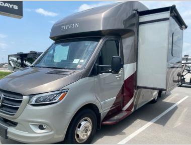 With any Wayfarer Class C diesel coach by Tiffin Motorhomes you will enjoy luxury features both inside and out. There is a new front and rear cap design with seamless gel-coated fiberglass plus full-body paint with two layers of clear coat for added protection. The Mercedes-Benz 3500XD dual wheel cutaway chassis provides a strong foundation, and the 3.0L V6 turbo 188 HP diesel engine will keep you going adventure after adventure! You will love the drive just as much as the destination with black leather adjustable captain's seats that are also heated, intelligent navigation, and a Mercedes-Benz MBUX multimedia system with a 10.25" touchscreen. Wherever you decide to roam, you will be met with interior comforts that include handcrafted overhead cabinetry, solar and privacy shades, solid surface galley countertops and task lighting, and a wardrobe in the bedroom to keep your space tidy. And don't overlook the exterior with motion-sensor lights in the cargo bay, a Girard side-mounted patio awning with integrated LED lighting and built-in speakers, lockable handles on the compartment doors, and so much more!