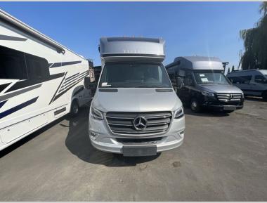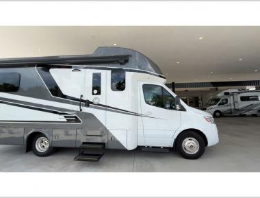 Sleeps 3 Length 25 ft 8 in Ext Width 7 ft 6 in Ext Height 11 ft 4 in Int Height 6 ft 8 in Interior Color Mink, Champagne Exterior Color Generation 4, Generation 6 Paint Schemes Hitch Weight 5000 lbs GVWR 11030 lbs Fresh Water Capacity 32 gals Grey Water Capacity 32 gals Black Water Capacity 28 gals Tire Size LT215/85R16 Furnace BTU 30000 btu Generator 3.2 kw Onan Quiet Diesel Fuel Type Diesel Engine 3.0L 6 Cylinder Turbo Diesel Chassis Mercedes-Benz 3500 Horsepower 188 hp Fuel Capacity 24.5 gals Wheelbase 170.3 in Number Of Bunks 1 Available Beds Queen Murphy Bed Torque 325 ft-lb Refrigerator Type Gas/Electric Refrigerator Size 8 cu ft Convection Cooking Yes Cooktop Burners 2 Shower Size 30" x 36" Number of Awnings 1 Axle Weight Front 4410 lbs Axle Weight Rear 7720 lbs LP Tank Capacity 12 gals Water Heater Type Truma AquaGo Comfort Plus Instant AC BTU 15000 btu Basement Storage 45 cu. ft. TV Info LR Mounted TV, BR Mounted TV Awning Info Girard Wind Sensor with Speakers Washer/Dryer Available Yes Gross Combined Weight 15250 lbs Shower Type Standard Electrical Service 30 amp Similar Motor Home Class C - Diesel Floorplans