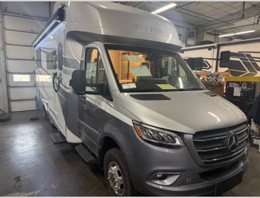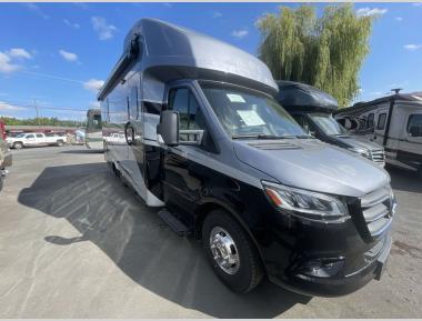 Sleeps 5 Slides 1 Length 25 ft 8 in Ext Width 7 ft 6 in Ext Height 11 ft 4 in Int Height 7 ft 2 in Interior Color Sedona, Grandview Exterior Color Coastal Blue, Silver Sand, Sea Mist Gen 7 Paint Schemes Hitch Weight 5000 lbs GVWR 11030 lbs Fresh Water Capacity 32 gals Grey Water Capacity 30 gals Black Water Capacity 26 gals Tire Size LT215/85R16 Furnace BTU 30000 btu Generator 4-Kilowatt RVMP Flex Power LP Fuel Type Diesel Engine 2.0L V4 Turbo Diesel Chassis Mercedes-Benz Dual Wheel Cutaway 3500XD Horsepower 208 hp Fuel Capacity 24.5 gals Wheelbase 170.3 in Number Of Bunks 1 Available Beds Twin Beds with King Conversion Torque 332 ft-lb Refrigerator Type Gas/Electric Refrigerator Size 5 cu ft Convection Cooking Yes Cooktop Burners 2 Shower Size 24" x 32" Number of Awnings 1 Axle Weight Front 4410 lbs Axle Weight Rear 7720 lbs LP Tank Capacity 12 gals AC BTU 15000 btu Basement Storage 93 cu. ft. TV Info LR TV Awning Info Girard Side-Mounted Power w/LED Lighting and Speakers Gross Combined Weight 15250 lbs Shower Type Standard Electrical Service 30 amp Similar Motor Home Class C - Diesel Floorplans